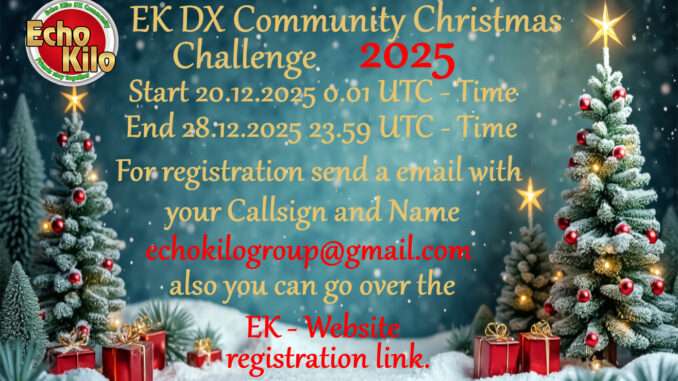 For registration send a email with your Callsign and name to echokilogroup@gmail.com (also you can go over the EK-WEBSITE on the registration link by The Christmas Challenge 2025 on top register menu.)
